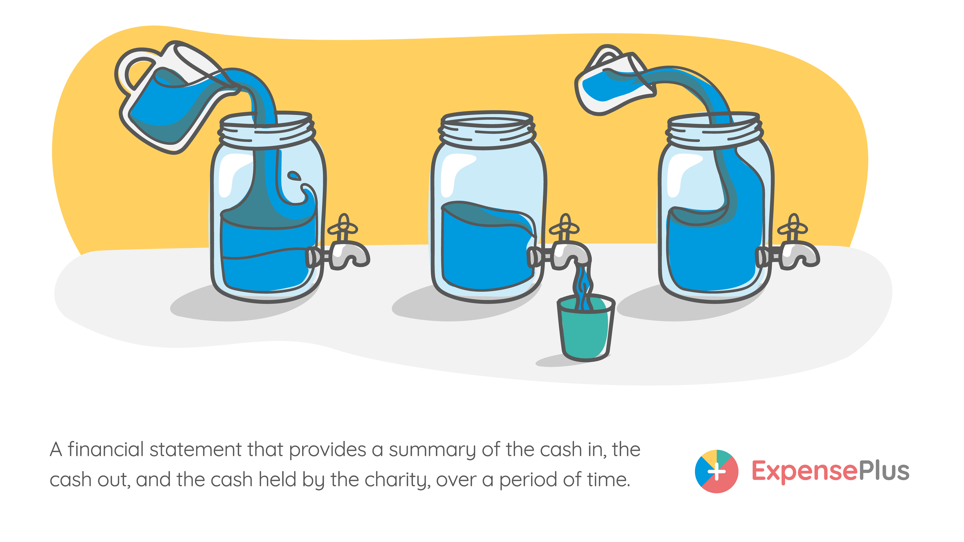 A financial statement that provides a summary of the cash in, the cash out, and the cash held by the charity, over a period of time.