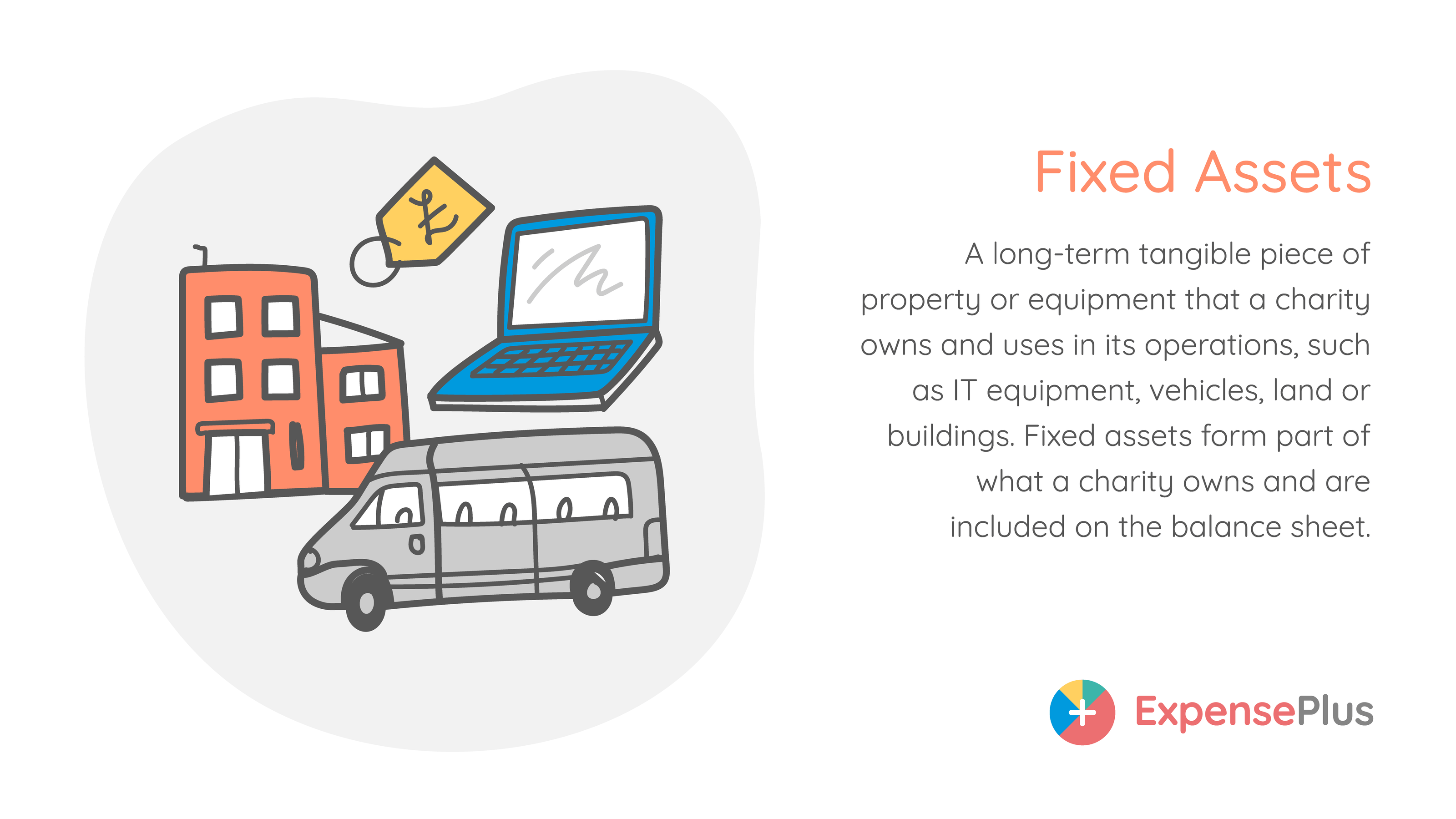 A long-term tangible piece of property or equipment that a charity owns and uses in its operations, such as IT equipment, vehicles, land or buildings. Fixed assets form part of what a charity owns and are included on the balance sheet.